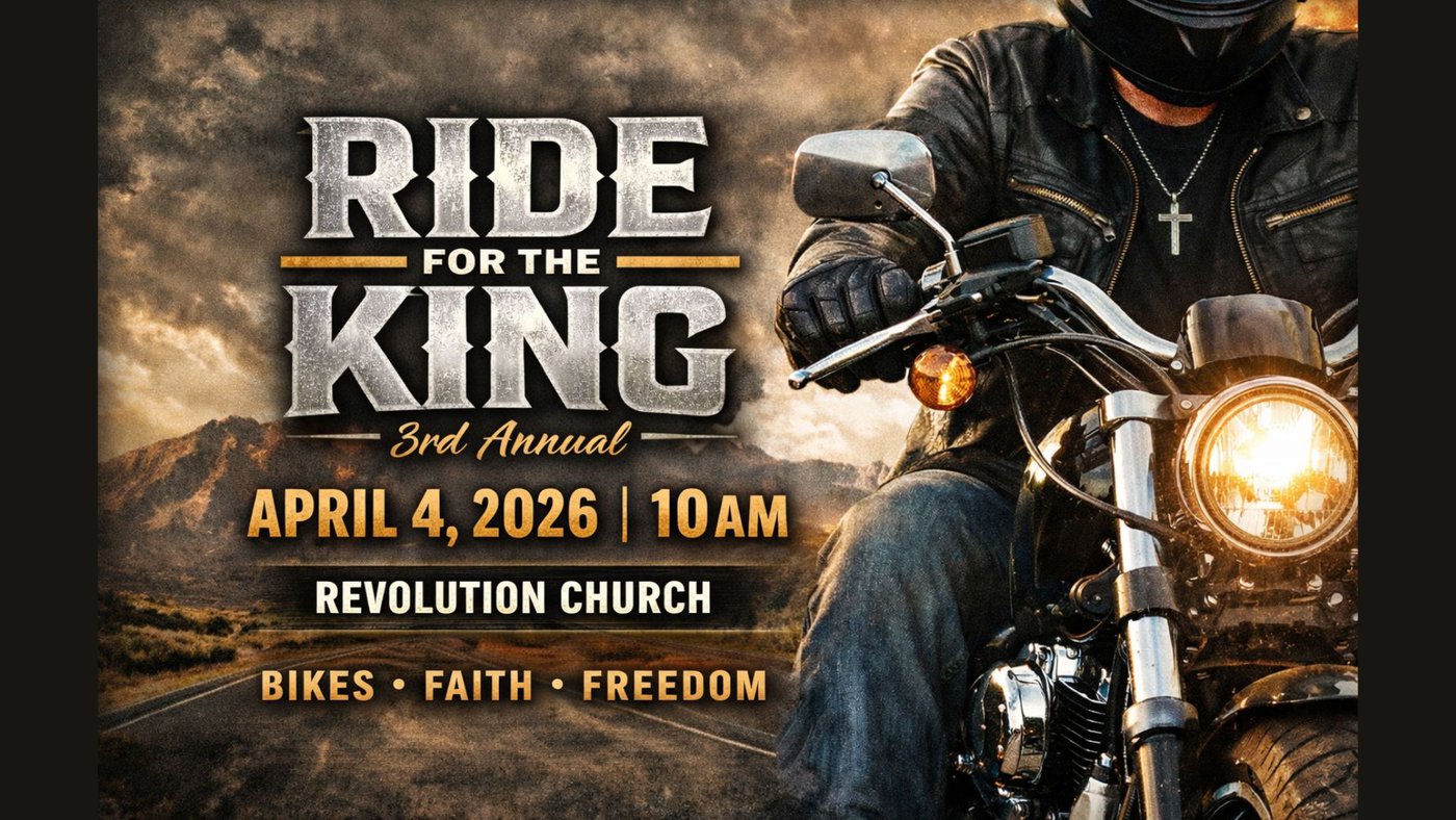 Welcome to our 3rd Annual "Ride for the King". The ride will be on April 4th at 10:00am. Registration will start at 9am with kickstands up at 10am. The cost is donation of any kind. We are looking to raise money for an Outreach Project in our Community. We will have some Give Aways and Food after the ride. Please register below. We will have T-Shirts available for a cost of $25 per shirt. We have many ways you can pay just let us know how you paid. If you are paying by check then you can make it out to Revolution Church and send it to 2332 Commerce Place, McDonough, Ga. 30253 or just bring it when you come. The ride begins at Revolution Church. Thanks